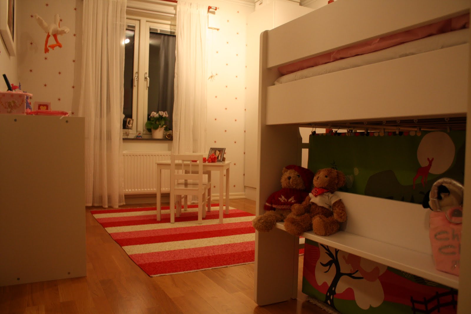 Gissa om Nora blev alldeles till sig i trasorna när hon kom hem i kväll och fick se sitt nygamla rum! Överlycklig och särskilt glad över skrivbordet. Hon hade svårt att komma till ro när Rikard lade henne och pratade och pratade...