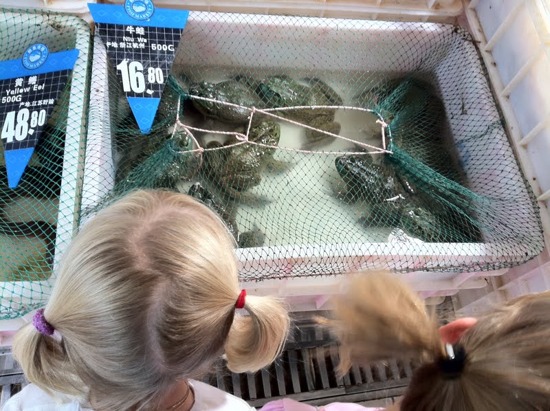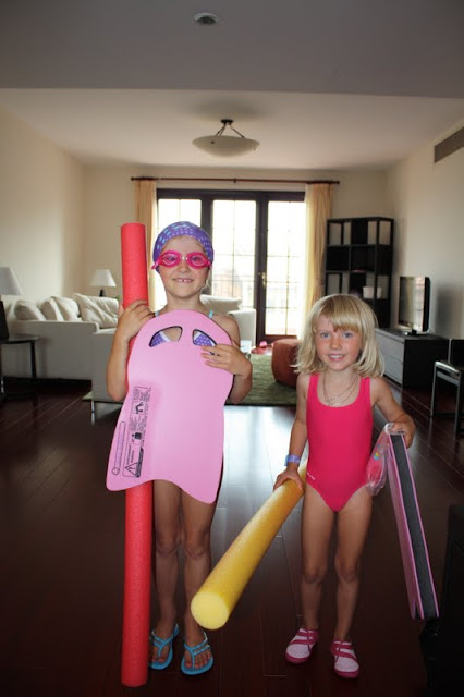 Vi var i en sportaffär också och köpte badkläder, simglasögon och badmössa (Nora skall ha det i skolan på simträningen) och barnen badade hur länge som helst i eftermiddags. Idag var det "bara" 28 grader och vi vuxna tyckte det var för kallt för att bada - tog en vecka att vänja sig :-)