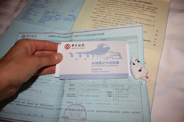 I morse var vi på Bank of China och fick konton...intressant det också och resultatet var en massa signaturer och stämplar. Ut kom ett kontokort och en "käck" liten dosa. Det ngt  opraktiska är att man måste ha både mobiltelefon och internetdosan för att använda internetbanken...de som inte har mobiltelefon tänker jag då...