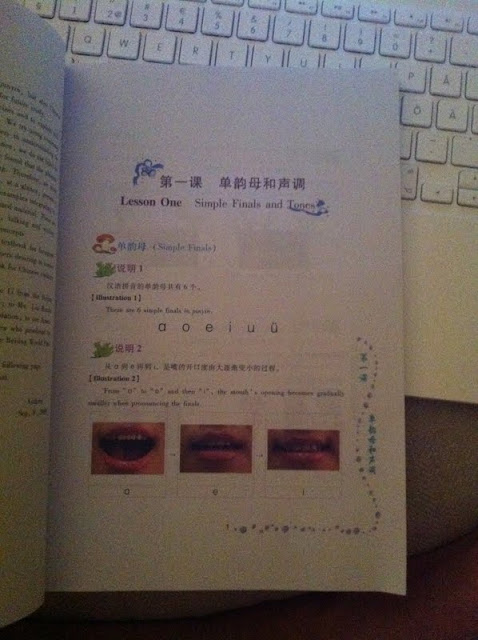Jag har ju glömt att berätta att vår Ayi Amanda gav mig en lärobok i går. Hon hade köpt den för att hon förstått att jag vill lära mig mandarin. Gulligt av henne! Jag får väl ställa upp lite extra och prata engelska med henne. Hon försöker verkligen och har faktiskt ett riktigt bra uttryck (stundtals :-) Idag när jag låg vid poolen gjorde jag några tappra försök till att börja men det är svårt! Jag tror att man behöver lyssna och repetera, lyssna och repetera. Ljuden är så lika varandra men kan betyda helt olika saker...