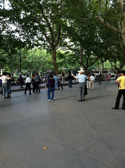 Vi åkte in till Fuxing park, en av Shanghais många parker. Vi har inte varit där tidigare (trots att det är en av de mest populära parkerna). Att tillbringa helger och andra ledigheter i parkmiljöer är något som många kineser gör. Flyger drakar, tränar, gör chi gong, dansar, spelar spel eller bara umgås. Stora som små, unga som gamla. Det är verkligen skön stämning i parkerna och mycket avkopplande.