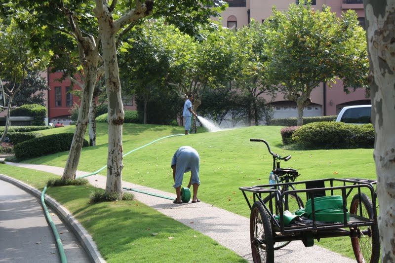 Skickar med två bilder från i morse när jag promenerade hem från skolan. De är tagna inne på vårt compound, Shanghai Raquet Club