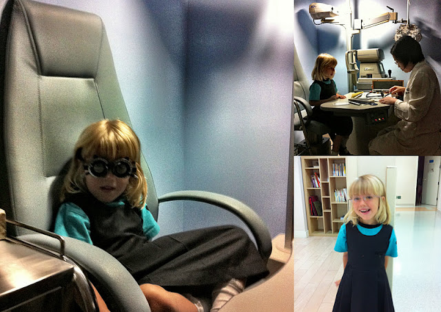 I går fick Siri en sk. eye screening på skolan (besök från en ögonklinik). Det visade sig att Siri har synfel och vi skulle kontakta en ögonläkare. Jag ringde vårt försäkringsbolag och de skulle undersöka saken...hm tänkte jag...Men efter 10 minuter ringde de upp och hade bokat tid på ett av de sjukhus vi kan använda här i Shanghai. Tiden, ja idag- redan, hos en ögonläkare. Vi åkte dit i eftermiddags och de gjorde en mkt grundlig undersökning, konstaterade fel, flera undersökningar och slutligen visade det sig att Siri behöver glasögon. Efter 4 veckor skall vi tillbaka för att se om hon även behöver lapp för ena ögat (men läkaren trodde inte det). När vi provade glasögonbågar så tittade Siri sig i spegeln, skrattade och utbrast "men jag ser ju precis ut som farmor" - gulligt! De är faktiskt väldigt lika!