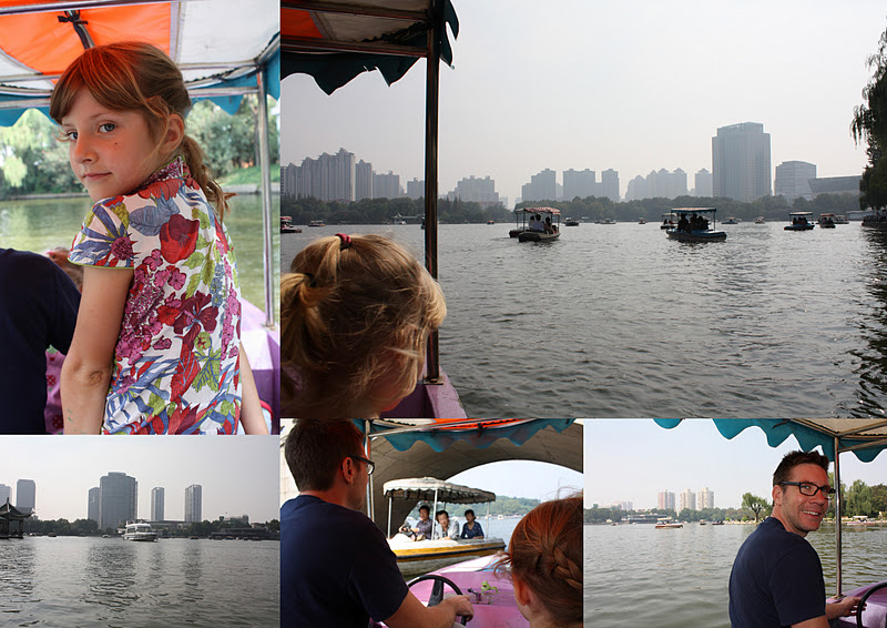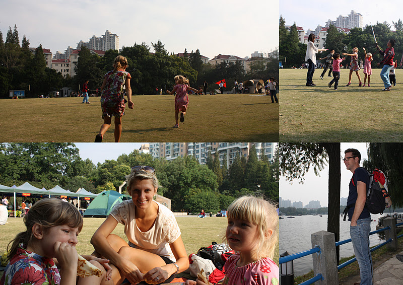 Idag var Rikard nöjd. Vi har varit på "sjön" i Changfeng park... 25 grader och sol bjöd Shanghai på idag och vi njöt av fulla drag av att hålla till i en av parkerna. Det har redan blivit en favoritsysselsättning för oss att tillbringa ledig tid i parker, tillsammans med lokalbefolkningen. Jag tror vi bara mötte en annan laowai familj till under hela dagen, annars var det bara lediga kineser med familjer som flanerade omkring, flög drake, spelade badminton och åkte båt. På de stora gräsmattorna slår de upp sina tält (fina nya campingtält) och vi trodde först att de bor där över natt men kom snart på att de tillbringar hela dagen i parken och då är det skönt att ha tältet att dra sig tillbaka i. Vi såg många kinesande kineser så att säga... För oss räckte det dock med filt!
