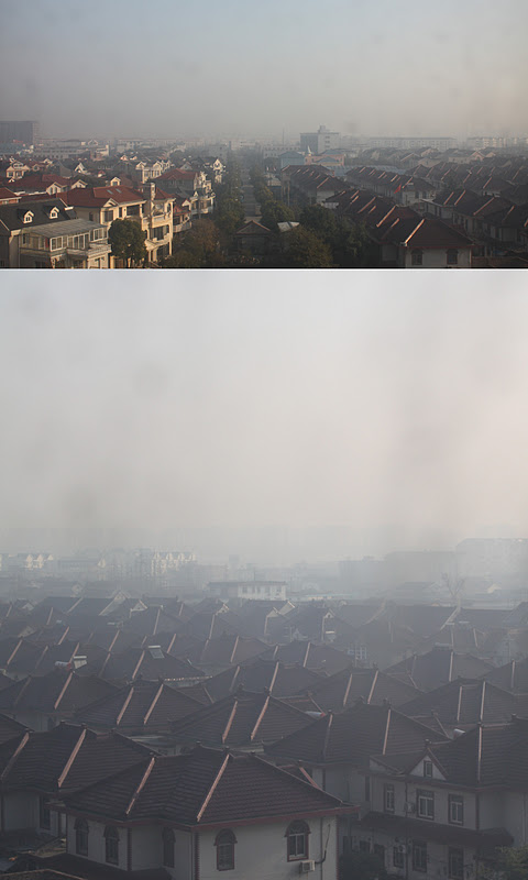 Det sägs att luftkvalitén i Shanghai är som värst november-januari och som bäst maj-augusti. Har läst en del på nätet om airpollution och man blir lite orolig...särskilt för barnen. Deras lungor är änmer utsatta än våra eftersom de fortfarande utvecklas. Att ha inomhusväxter är bra men luftrenare gör det mesta av jobbet, sägs det. Vi tillbringar 80-90% av vår tid inomhus och de farligaste partiklarna finns i nästan lika stor mängd inomhus som utomhus. Läskigt och skrämmande. Detta är det absolut sämsta med att bo här i Shanghai och det går inte en dag utan att man tänker på luftkvalién. Särskilt dagar som denna då det verkligen syns...