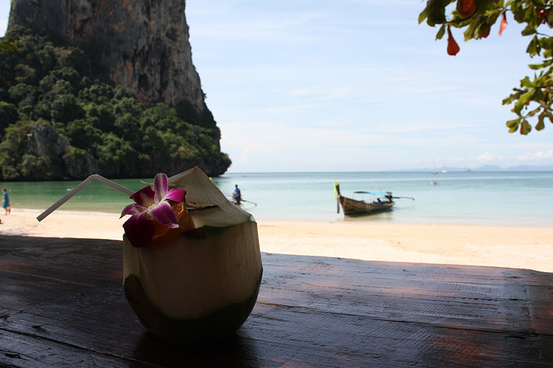 Vår första tripp till Thailand och gissa om vi har njutit av ren, fräsch luft (det luktar gott!!), vackra vyer och underbar mat och färsk frukt! Med start på Railay beach kunde det inte ha börjat bättre. Några dagar där och man blir renad till kropp och själ. En riktigt skön atmosfär! Barnen var nere i varv och harmoniska efter några timmar! Morgnarna började med frukost vid stranden - omelett och färska frukter. Några dagar tränade syrran och jag på stranden - det var riktigt härligt att löpträna med utsikt. Dessutom är vi ju inte längre bortskämda med utomhusträning eftersom Shanghailuften är för smutsig för att det skall vara hälsosamt att träna ute. Rikard njöt mest av snorkling och en öl vid poolen förutom den dag då vi körde klättring med guide. Det var en höjdare :-).