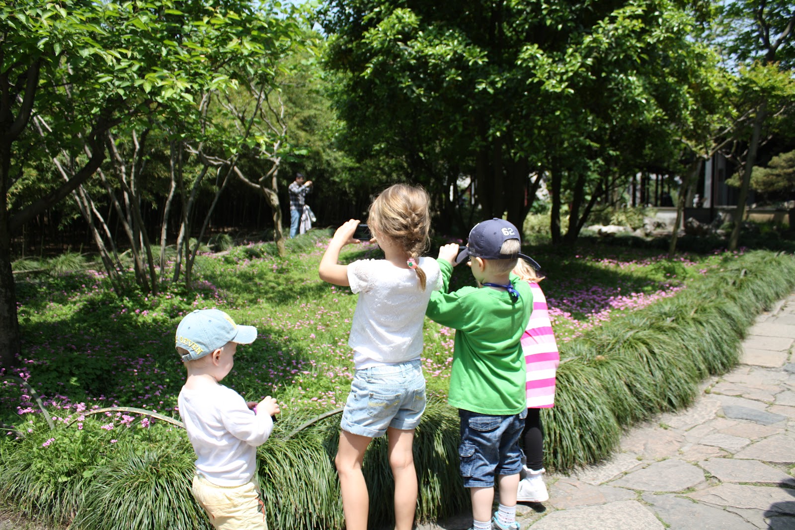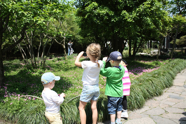 Idag åkte hela gänget till Suzhou - en stad cirka 8 mil väster om Shanghai. Jag skrev om denna stad för några veckor sedan faktiskt då vi var där tillsammans Rikards bror med fru. Denna gång besökte vi "the garden to linger in" och vi var eniga - en fantastisk plats, mycket kontemplatorisk. Till och med barnen befann sig i något slags "lugn". De fick kameror av Eva och Petter i går! och nu har vi 3 lyckliga små fotografer här hemma :)